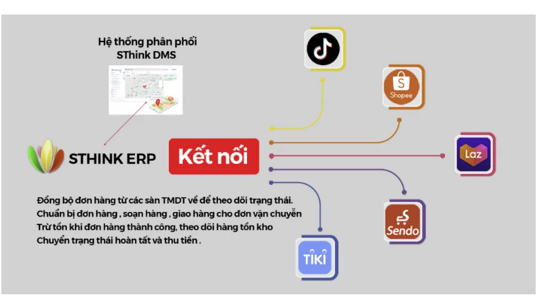 Trong số các nền tảng tại Việt Nam, SThink là giải pháp quản lý dữ liệu tập trung từ các sàn TMĐT được nhiều doanh nghiệp lựa chọn. Điểm mạnh của SThink nằm ở khả năng kết nối API đa nền tảng: Shopee, Lazada, TikTok Shop, Tiki,… cũng như Website, Facebook và các kênh bán khác.