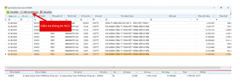 Phần mềm kế toán Sthink sẽ tự động truy xuất hóa đơn đầu vào từ hệ thống Viettel theo yêu cầu của người dùng. Toàn bộ hóa đơn mới sẽ được tải về và cập nhật vào danh sách.